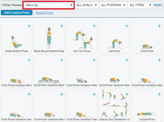 We can now add the poses to our yoga sequence by simply clicking on the yoga poses and re-ordering them.